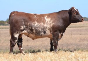 A low birth weight, early maturing, roan bull with a very good data set. High marbling, fat, docility, milk and stayability, combining for Top 1% API. 33kg Birth.