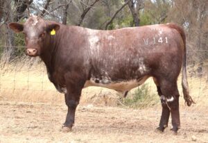 A long, red/roan bull with a good side on profile. Dam has bred well with bulls selling to $13,500, $12,000 and $10,000. 41kg Birth.