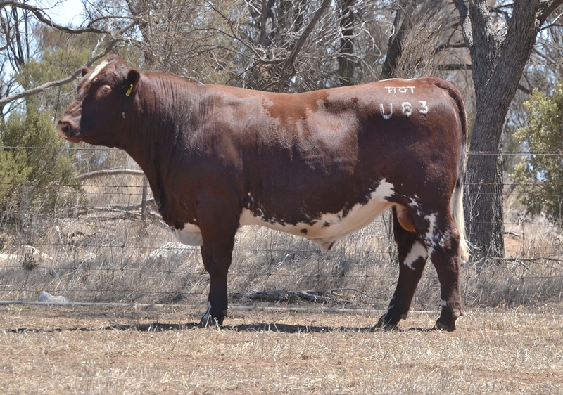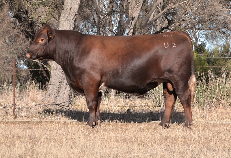 A lovely slick coated, dark red bull with high growth and marbling. Top 15% Weaning Wt, Carcase Wt, Maternal Weaning Wt, Top 25% Yearling Wt, Top 30% Marbling, Docility. An extra degree of shape in the Unlimited progeny. 45kg born. HOMOZYGOUS POLLED