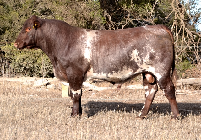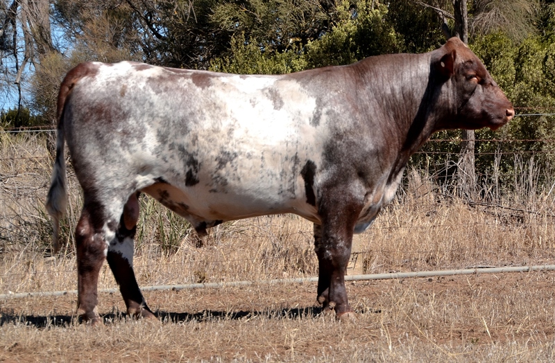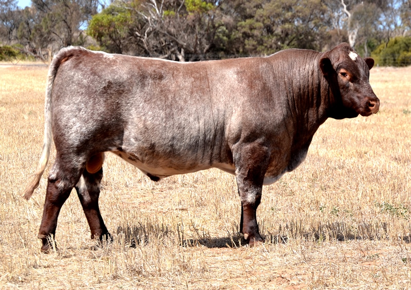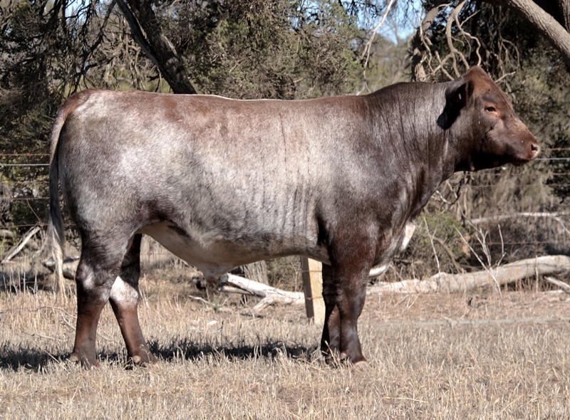 A very deep, thick roan bull with below average birth, above average growth and high marbling data. Top 3% Stayability, Top 4% API, Top 5% Marbling, Top 20% Maternal Calving Ease. Maternal brother sold for $10,000. 43kg born.