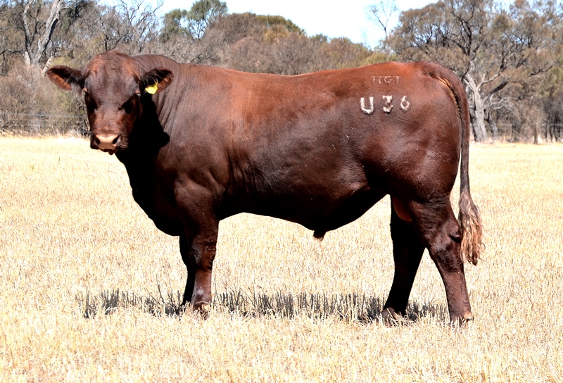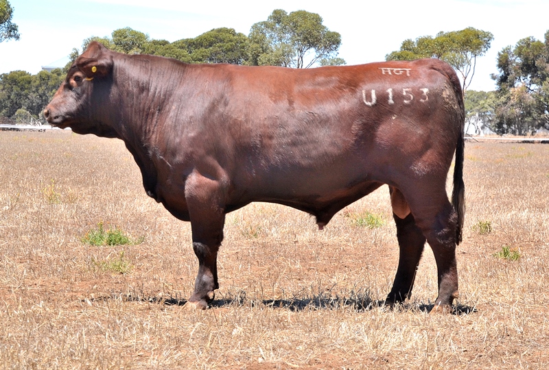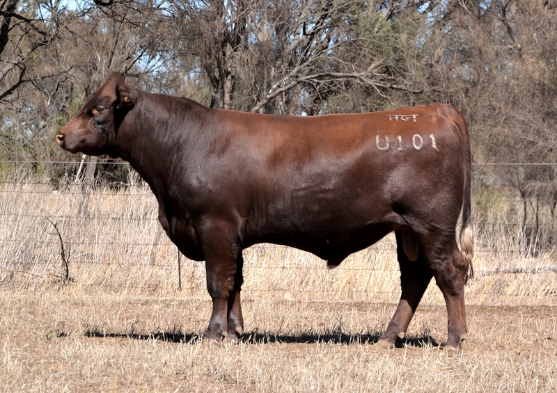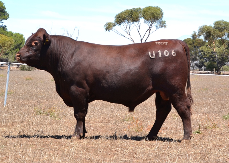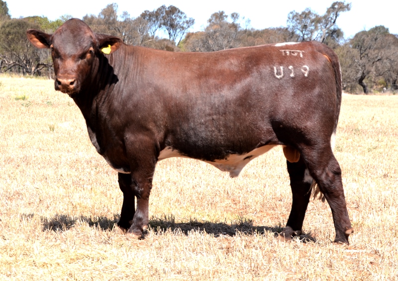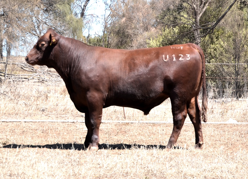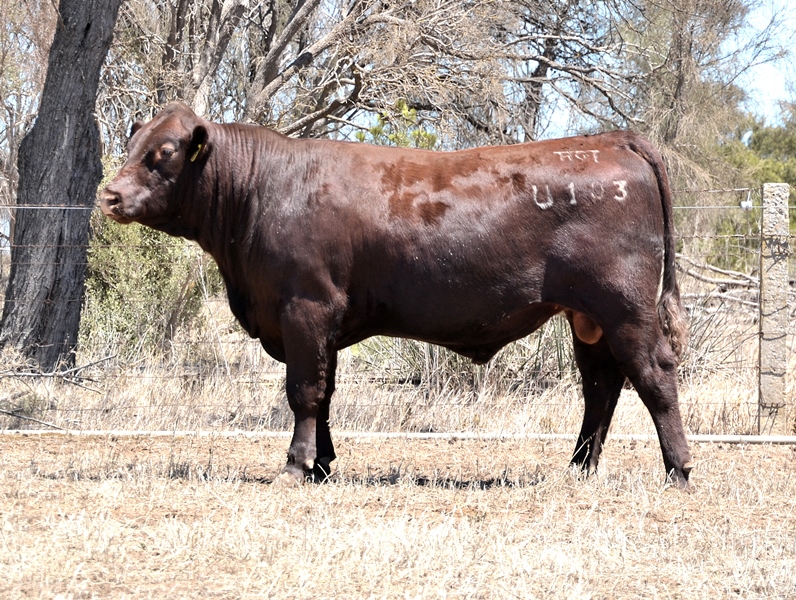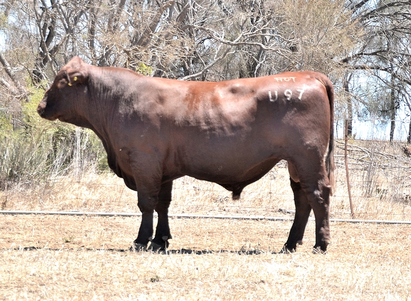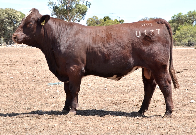 A dark red bull with a lovely muscle expression. Top 15% Docility, 20% Weaning Wt, Carcase Wt, Top 30% Stayability. First Bungulla Lyndon son we have offered. 36kg born.