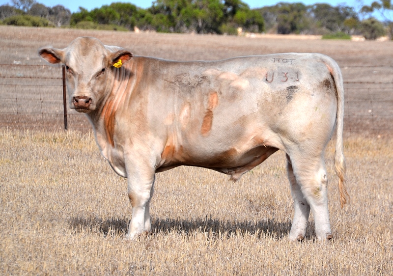 Our only white bull in the Sale who is below average birth with a tremendous topline and muscle shape. Top 20% Maternal Calving Ease, Top 25% Stayability, Top 30% Fat. Dam is an outstanding cow who was calf Champion, and returned as Junior and Grand Champion Cow at Royal Adelaide Show, and has a daughter in our Embryo Program. 40kg born. HOMOZYGOUS POLLED