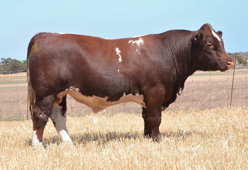 An easy doing, slick skinned bull with a lot of carcase shape. Curve bending data with low birth, high growth, high fat and marbling, combining for Top 15% API. 32kg Birth.
