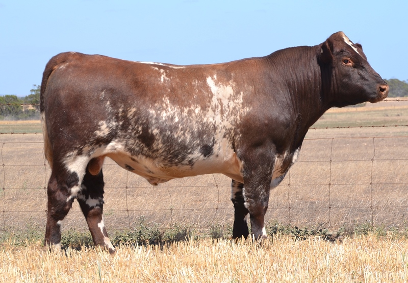 A very stylish bull with balance and presence. High growth and marbling data along with good stayability. Dam has bred well with maternal brothers selling for $16,000, $14,000 and $10,000. 46kg Birth.