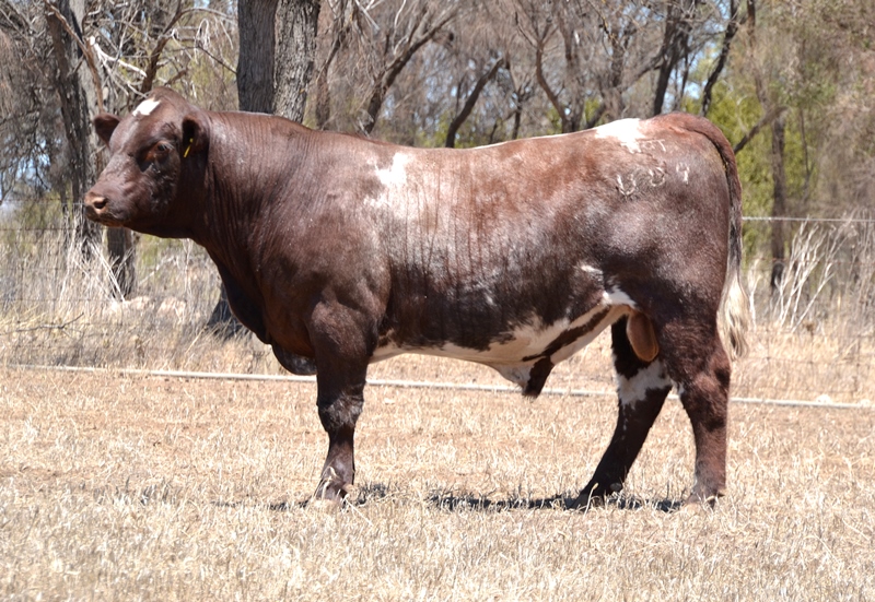 An early maturing, low birth weight, smooth skin bull, with good fat coverage, high marbling and growth data. Top 2% Maternal Calving Ease, Top 3% Fat, Top 15% Marbling, Top 20% API, Calving Ease, Top 25% Weaning Wt, Carcase Wt. 35kg born. HOMOZYGOUS POLLED