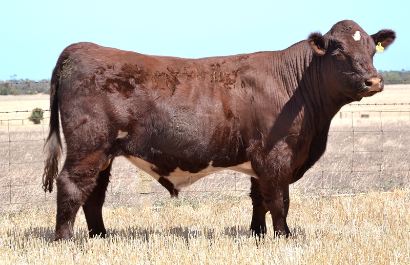 The first All In 6K bull to be offered for sale in Australia. Early maturing with tremendous carcass shape. Outstanding curve bending data with low birth, high growth, high marbling, fat and milk, combining in Top 1% API. A very eye appealing, young sire. 36kg Birth.