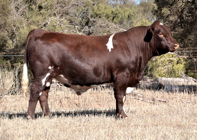 An early maturing, thick set bull with low birth, high marbling and calving ease. Top 3% Docility, Top 10% Birth Wt, API, Stayability, Maternal Calving Ease, Top 15% Marbling, Calving Ease. Full brother sold last year for $8000. 39kg born.